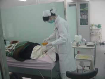 2) 淡斑护理热膜:采用当归粉热膜对皮肤进行热渗透,使局部血液循环加快,皮脂腺和汗腺分泌量增加,促进营养和药物成分的吸收,具有增白和减少色斑等功效。