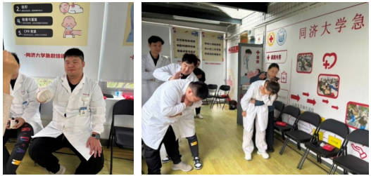 培训中,同济大学资深急救讲师苏娜老师以“值班常见应急场景”为导入,结合校园中可能发生的突发晕厥、急性过敏、创伤出血、心脏骤停等典型案例,详细讲解了急救响应流程与关键操作要点。课程重点涵盖了心肺复苏(CPR)、AED使用、止血包扎、急症初步评估与沟通技巧等内容,并针对值班中容易出现的“判断迟疑”“操作不规范”“信息记录不完整”等问题进行逐一剖析,帮助参训人员建立清晰、规范的急救思维。